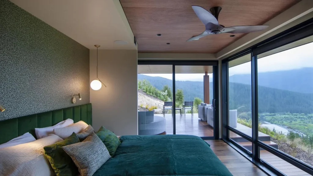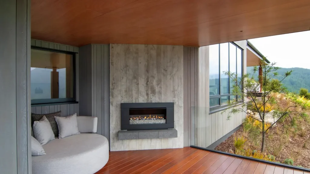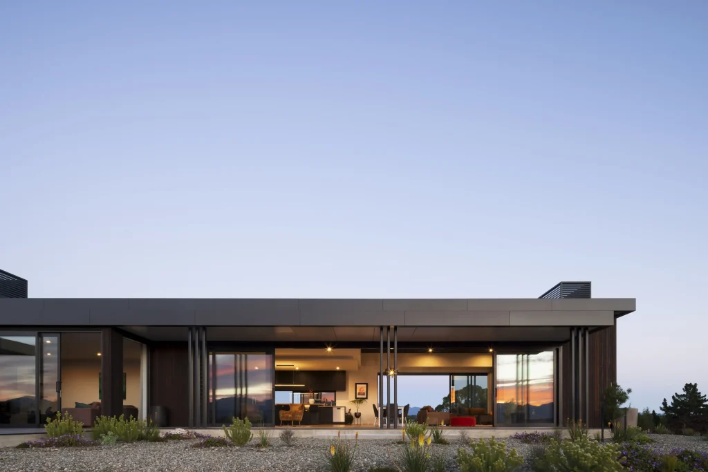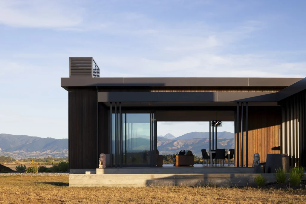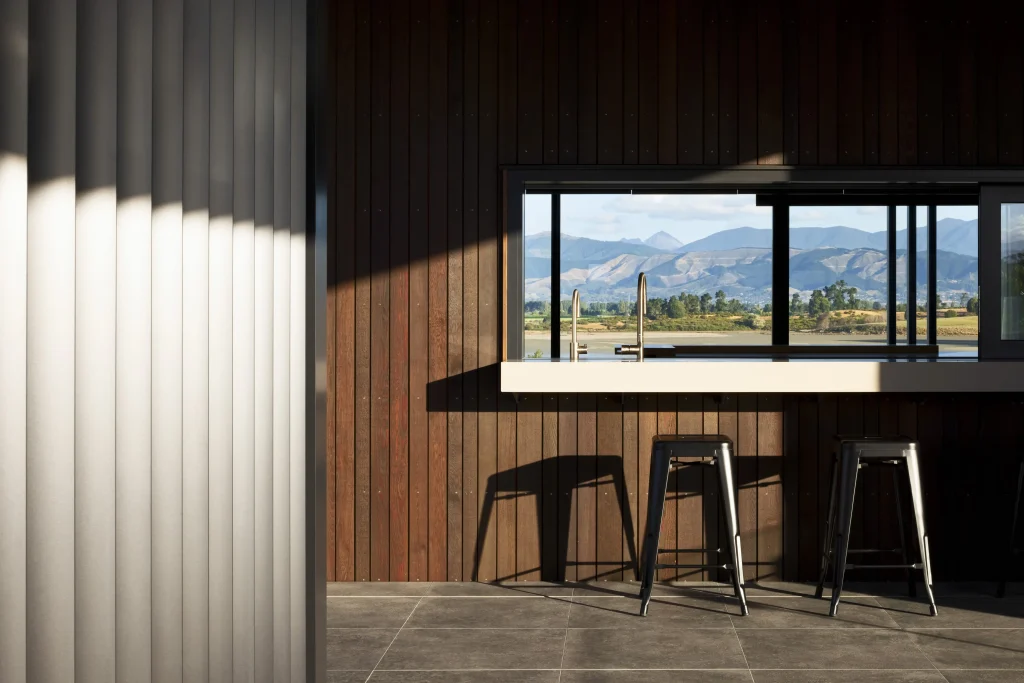 Material selection is driven by both functional and aesthetic considerations. Shuttered precast concrete provides structural integrity while visually grounding the building within its site context. Complementing this, dark-stained cedar cladding serves a dual purpose—its subdued tonality allows it to recede into the natural backdrop, while its organic texture enhances the residence’s overall material synergy with its environment.