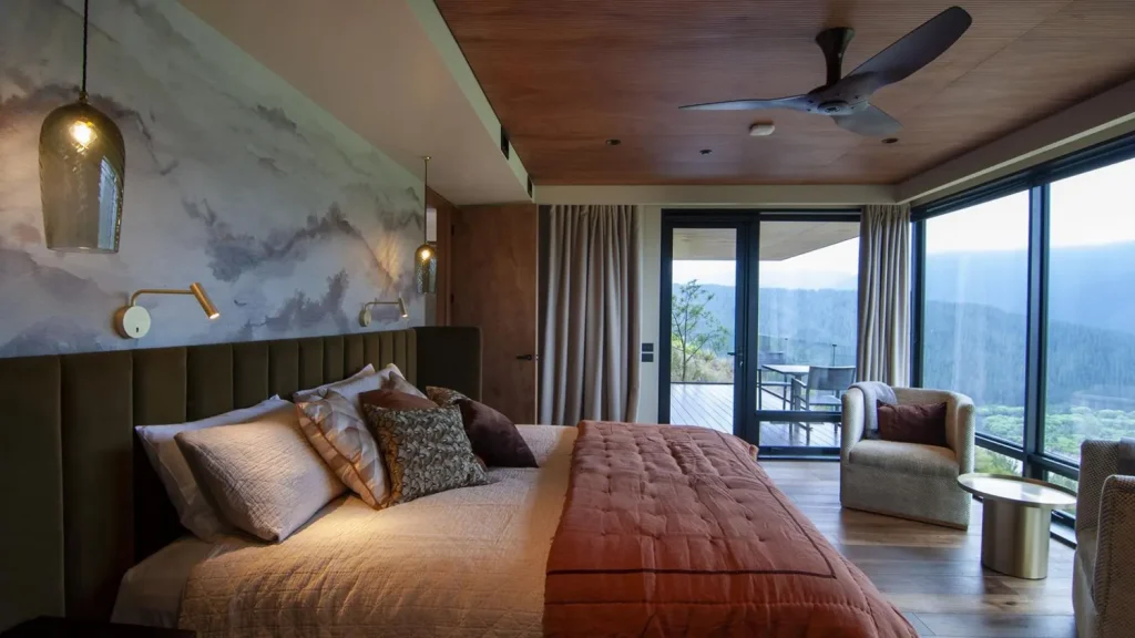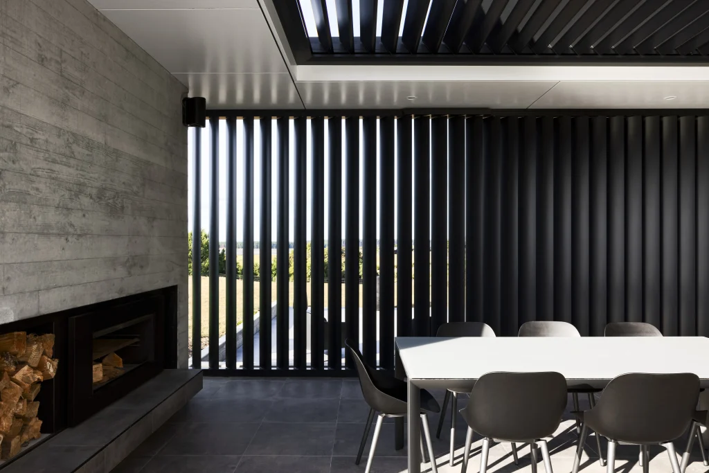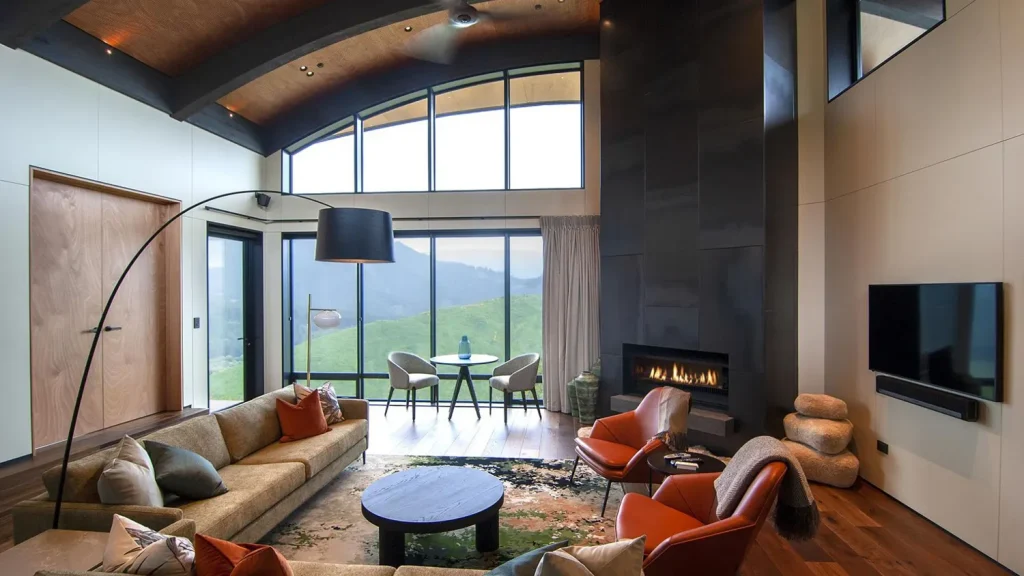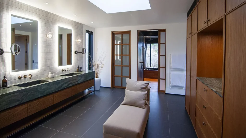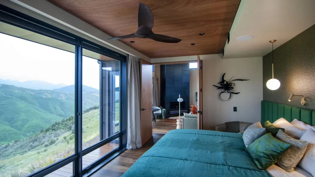 Material selection is driven by both functional and aesthetic considerations. Shuttered precast concrete provides structural integrity while visually grounding the building within its site context. Complementing this, dark-stained cedar cladding serves a dual purpose—its subdued tonality allows it to recede into the natural backdrop, while its organic texture enhances the residence’s overall material synergy with its environment.
