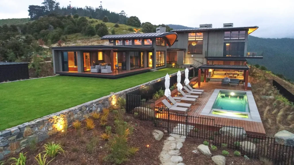 Nestled within a densely populated area of Nelson, this refined, vertically oriented residence exemplifies the seamless integration of architectural elegance with structural precision. Designed to optimize spatial efficiency within a constrained footprint, the three-story home incorporates a swimming pool while addressing significant geotechnical challenges to ensure site stability and mitigate potential impacts on adjacent structures.